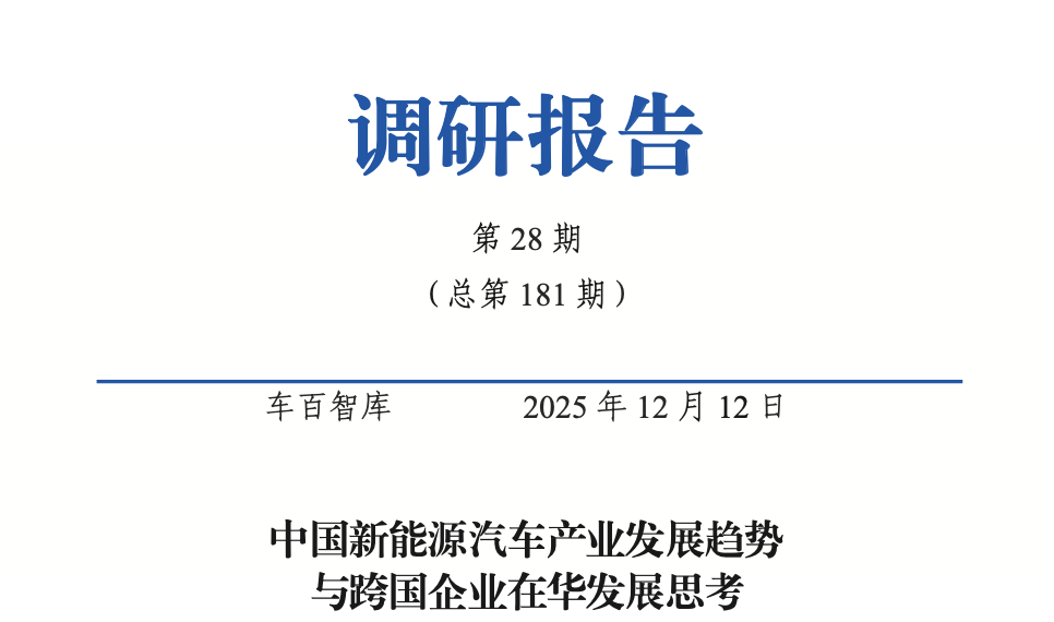 2025年,全球汽车产业正处于深度变革的关键时期。电动化浪潮奔涌向前,智能化技术加速迭代,跨界融合趋势日益显著,新的产业生态正在重塑。作为面向智能化时代的汽车产业一流智库,车百智库始终坚守“面向政府和行业,服务战略与决策”的宗旨,紧密跟踪产业发展前沿,深入剖析行业痛点,全年共推出31期调研报告,涵盖智能化、市场消费、商用车&专用车、全球合作、前沿技术、汽车宏观、聚合智能、后市场等八大核心篇章,全面解析产业变革趋势,为行业发展提供精准决策支撑。